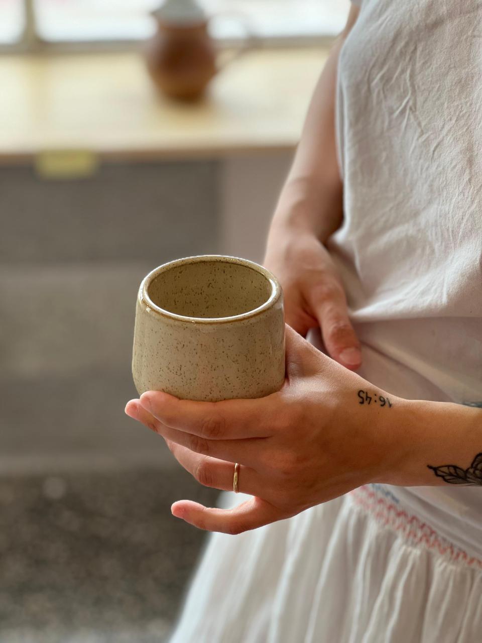 Pocillo de gres, color beige, 180cc