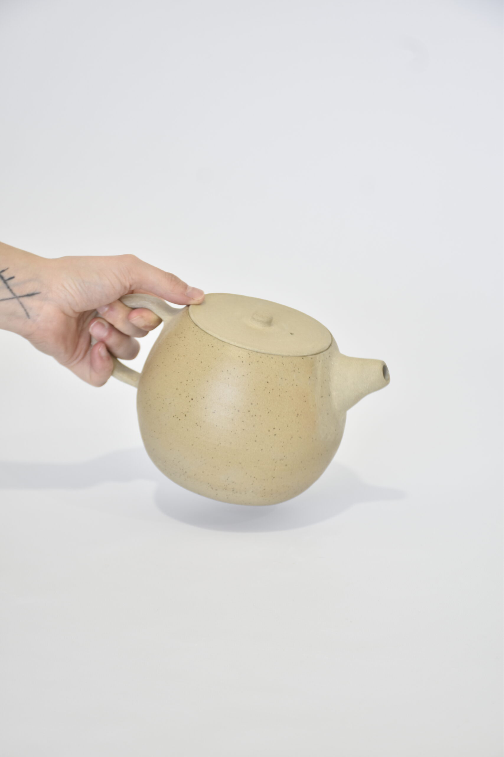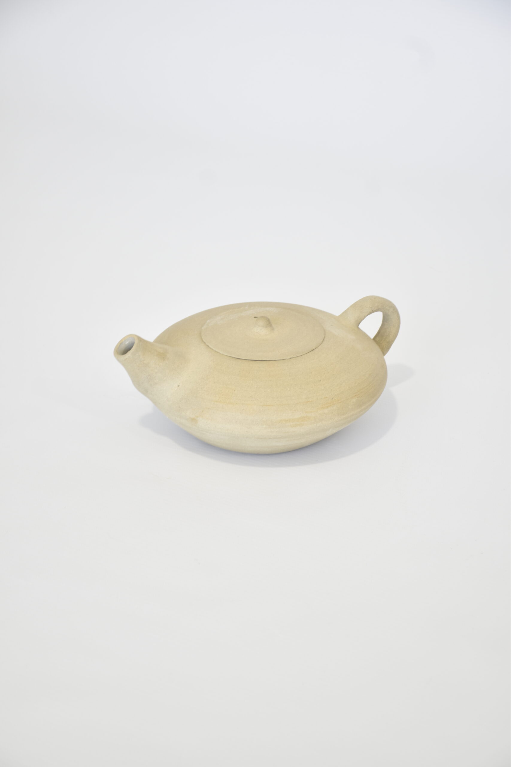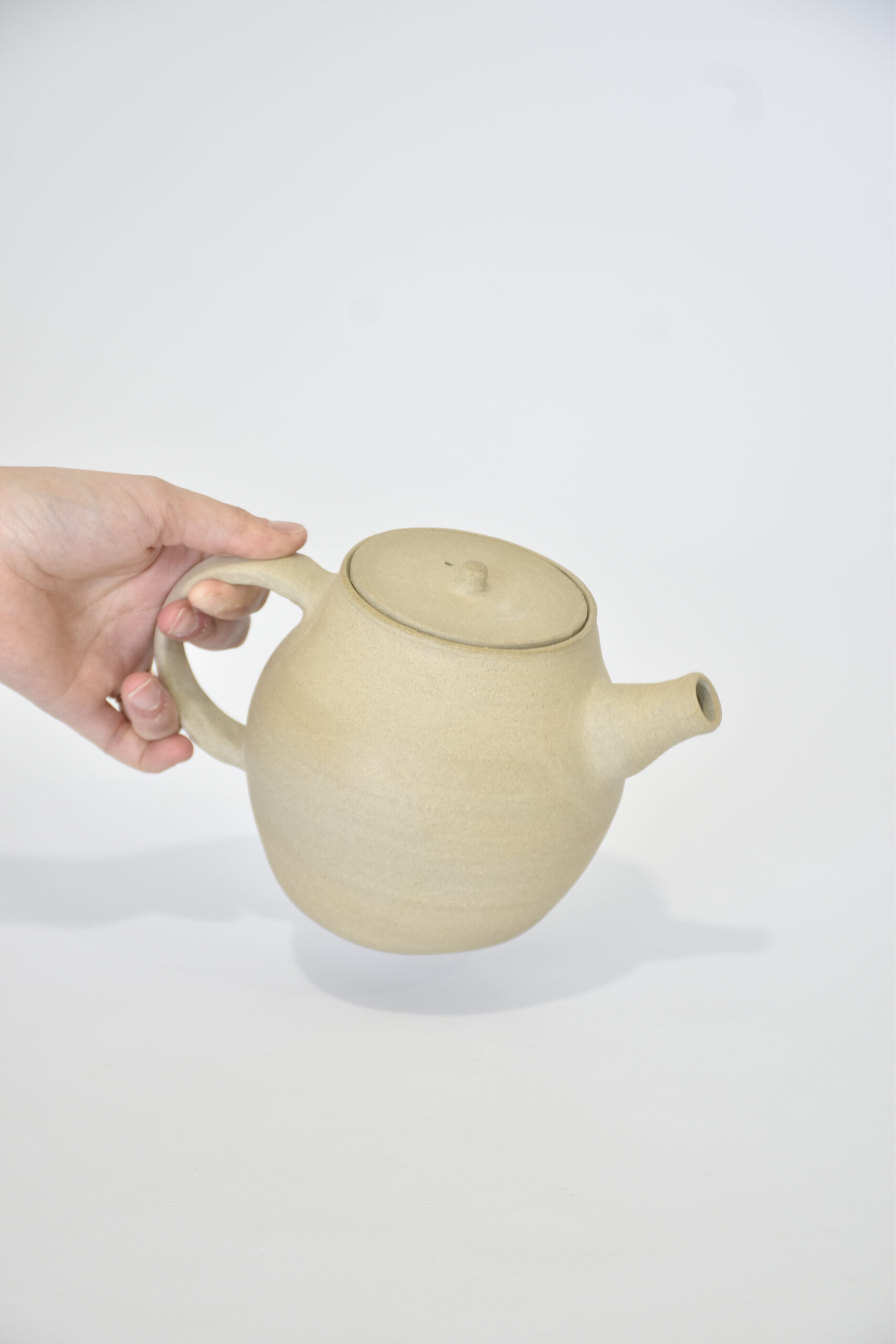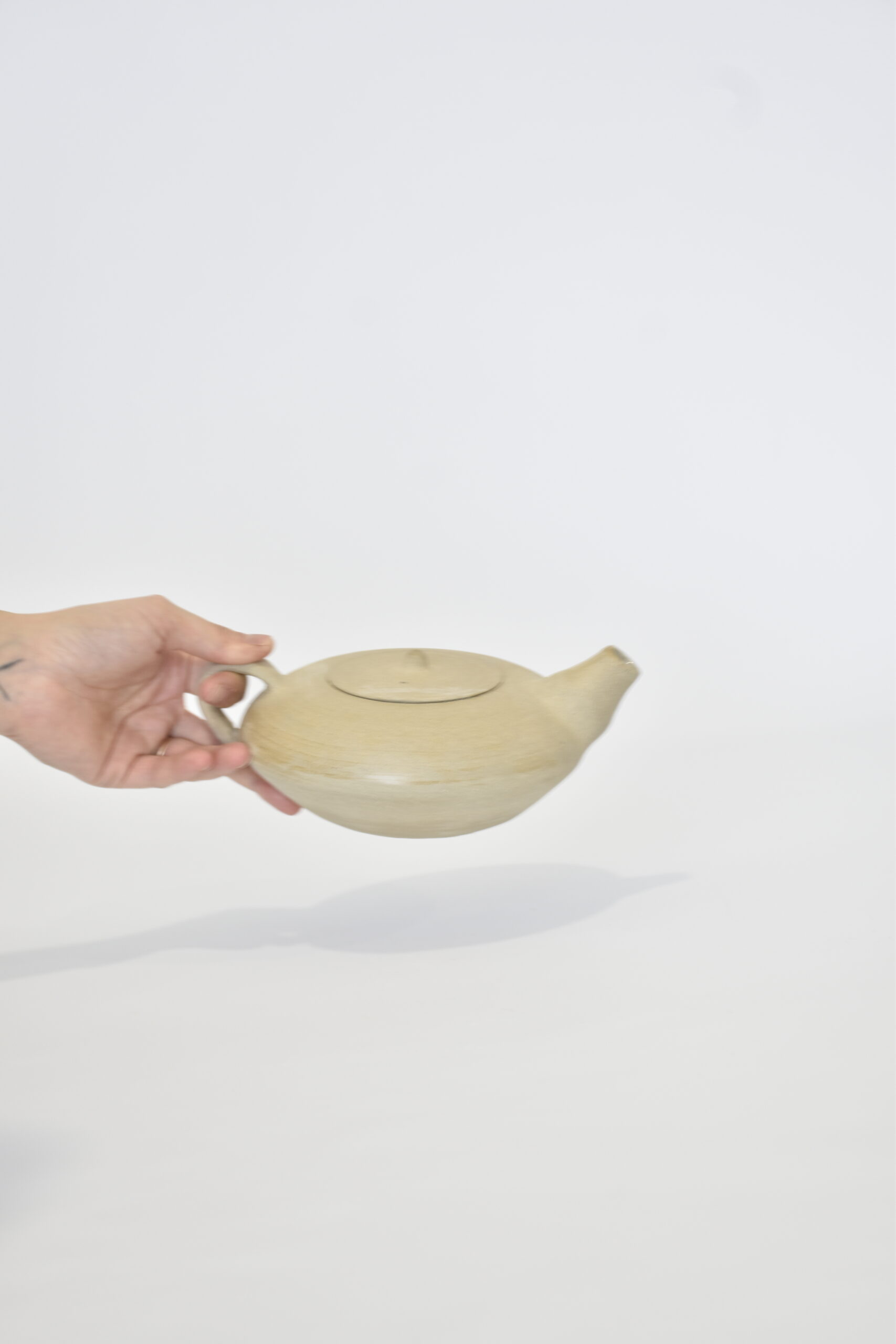 Es una tetera esmaltada por dentro y cruda por fuera en color claro.