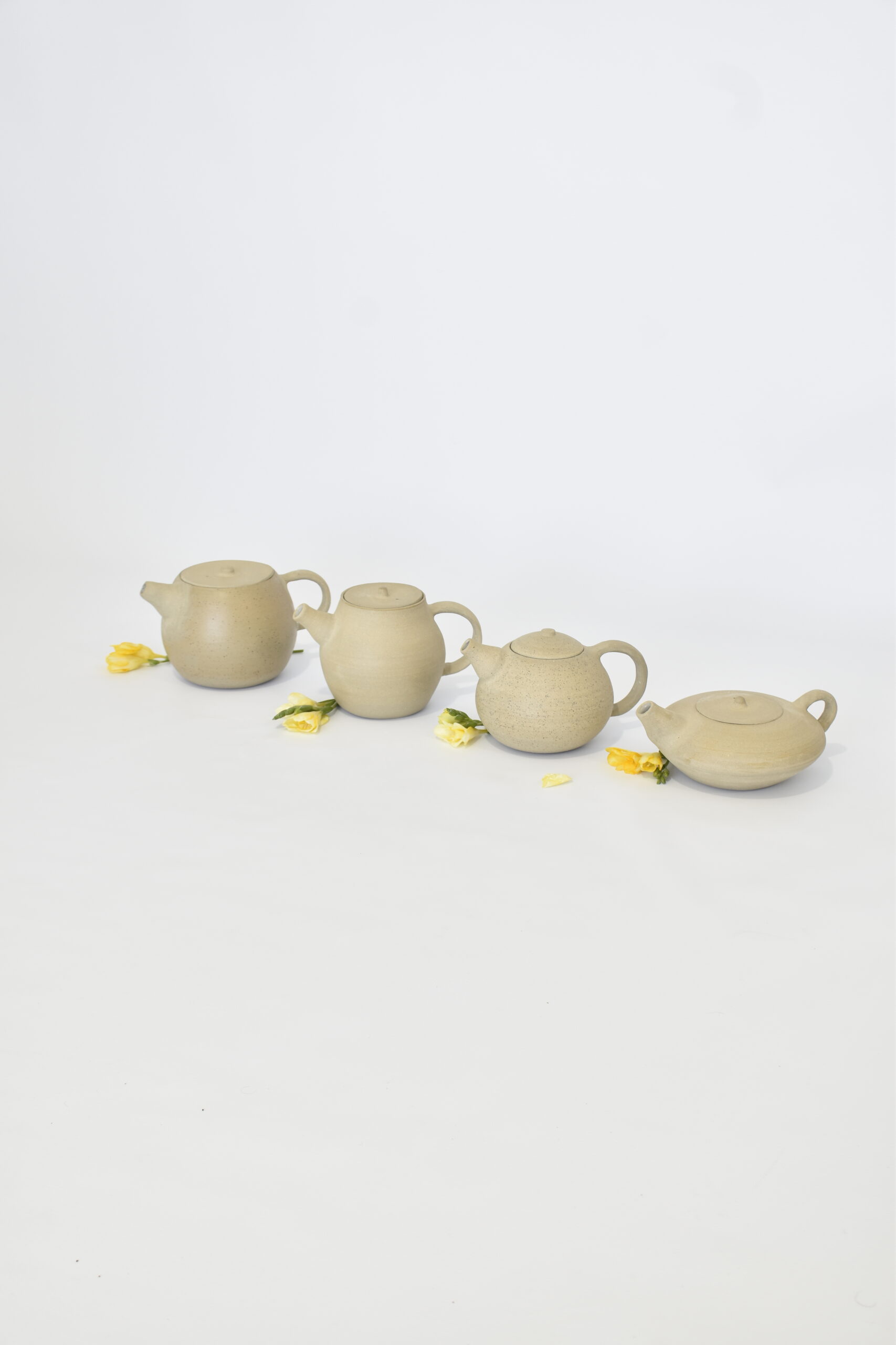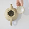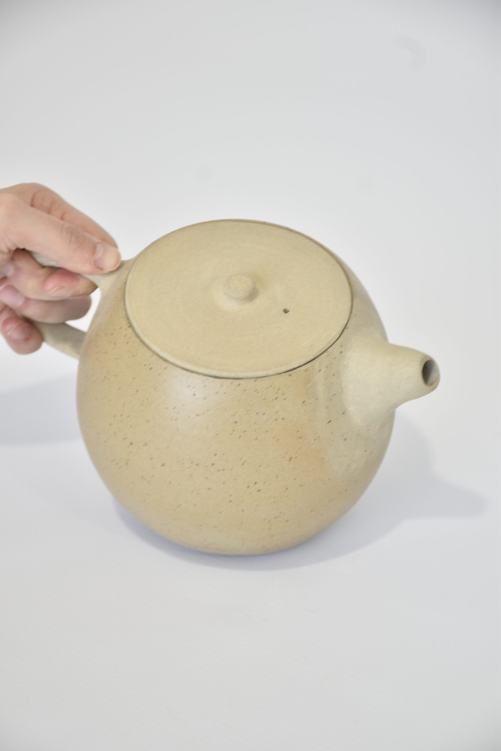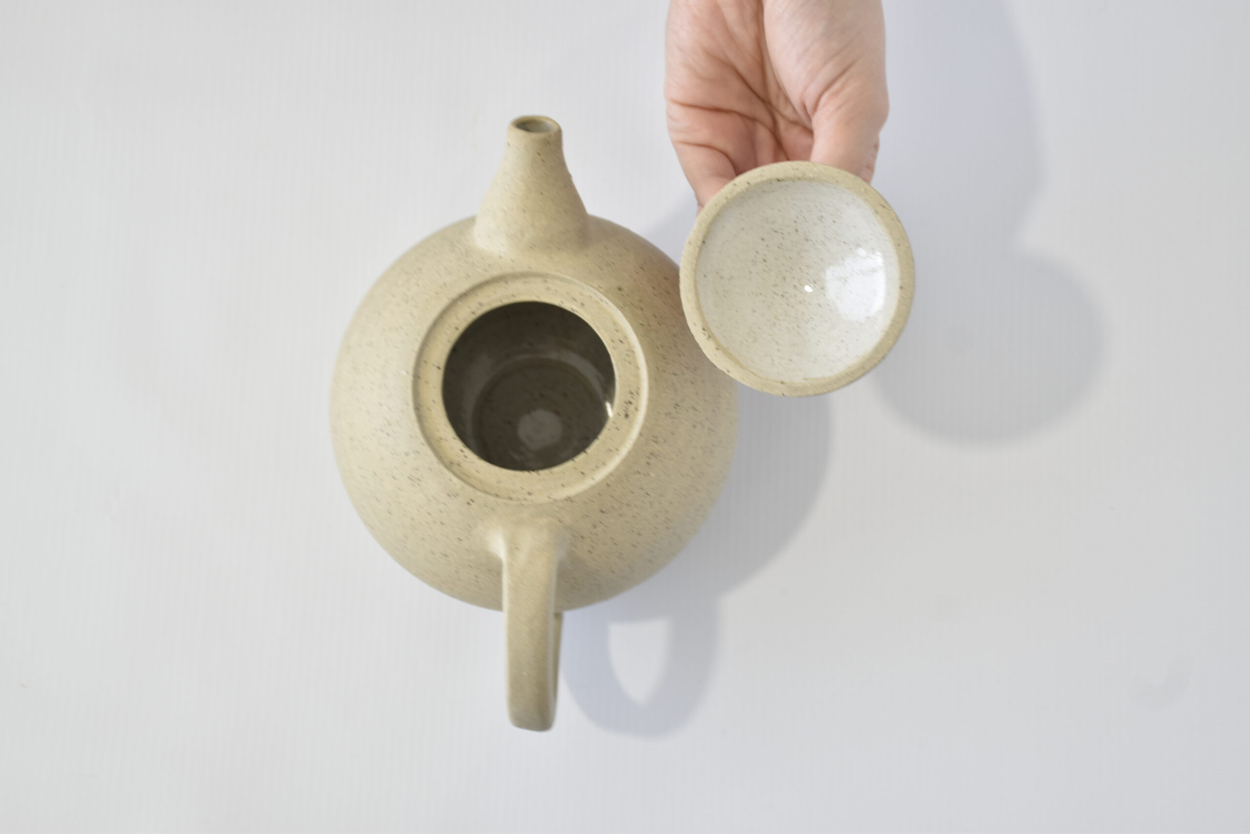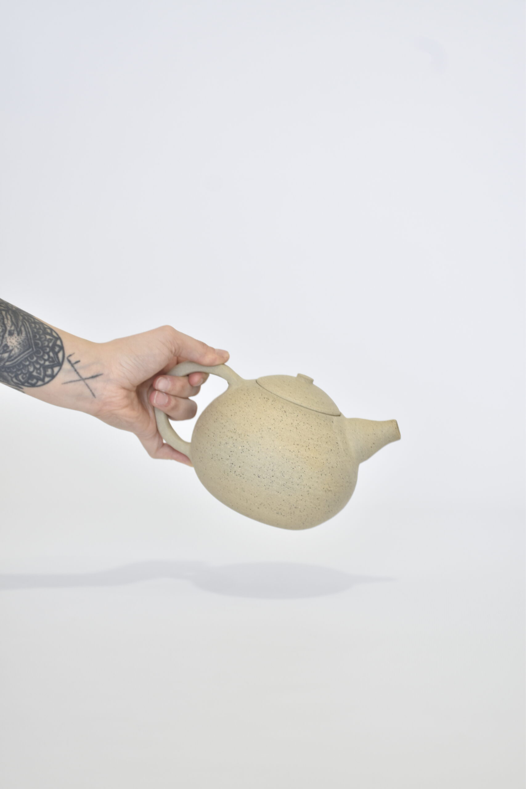 Es una tetera esmaltada por dentro y cruda por fuera en color claro.